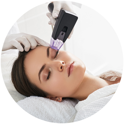 Procedimento de rejuvenescimento facial que combina microagulhamento fracionado com radiofrequência para estimular a produção de colágeno, melhorar a textura da pele, reduzir poros dilatados, rugas e cicatrizes, resultando em uma pele mais firme e radiante.